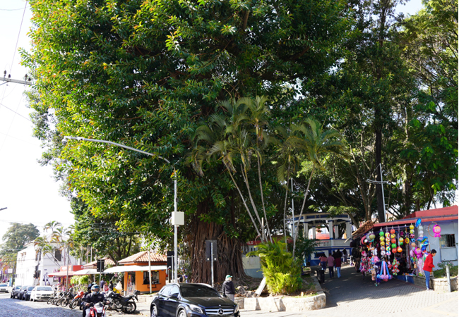 A Ficus elastica, também conhecida como Falsa-seringueira, é uma espécie exótica originária da Ásia. Foi introduzida em áreas urbanas brasileiras, principalmente a partir dos anos 1970, de forma não planejada, por conta da aparência ornamental. No entanto, suas raízes agressivas e galhos irregulares tornam essa árvore inadequada para espaços públicos urbanos, como praças e calçadas.