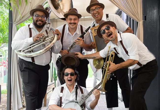 Música de rua, improviso e brasilidade: grupo une a energia de New Orleans com os ritmos do Brasil em uma viagem sonora irreverente e vibrante.