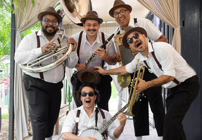 Música de rua, improviso e brasilidade: grupo une a energia de New Orleans com os ritmos do Brasil em uma viagem sonora irreverente e vibrante.