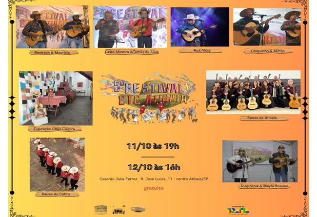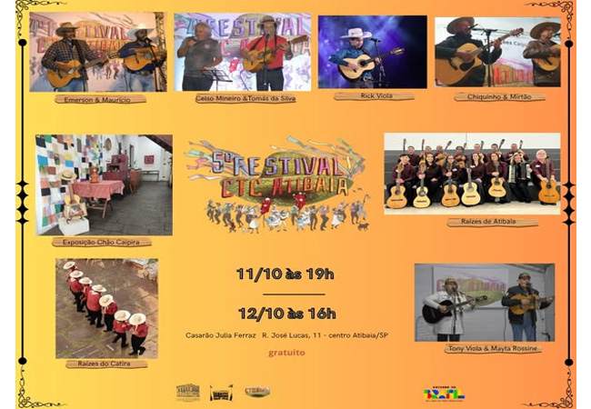 – 5º Festival CTC Atibaia é realizado com recursos do Prêmio Cultura Viva Sergio Mamberti, Secretaria de Cidadania e Diversidade Cultural – Ministério da Cultura, com produção do Centro de Tradições Caipiras de Atibaia e Ruth Rubbo Produções Culturais