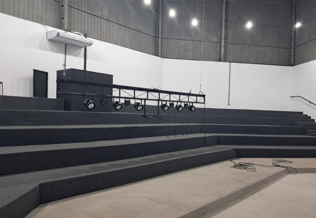 O anfiteatro foi totalmente equipado, contando com telão, sistema de ar-condicionado e palco para apresentações artísticas e culturais.