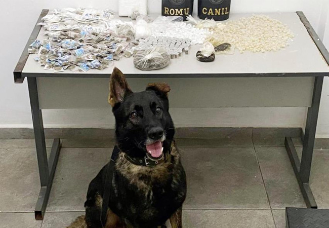 Com a chegada do cão policial Lex e de seus condutores, foi iniciada uma varredura minuciosa na área indicada. Após quase uma hora de buscas, o faro do cão foi decisivo: ele identificou o odor de entorpecentes e conduziu as equipes até o ponto onde o material estava escondido. As drogas estavam acondicionadas em sacos plásticos, protegidas da chuva e do sol, e camufladas entre arbustos de difícil acesso.