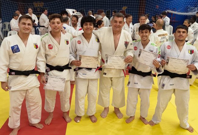 Os judocas atibaienses Alan da Silva, Leonardo Andrei, Arthur Hideki, Victor Marques e Gabriel Cavasin passaram pelo rigoroso exame técnico e de Kata, demonstrando excelência teórica e prática para conquistar a tão almejada faixa preta.