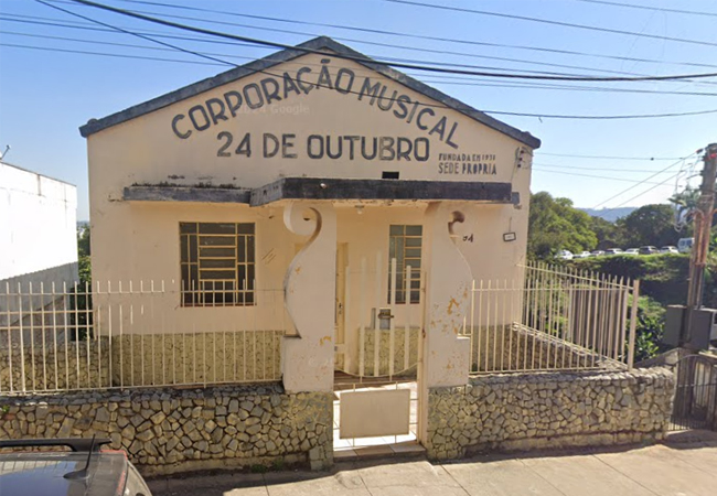 A sede da Corporação Musical 24 de Outubro, instalada em um prédio antigo de relevante valor histórico, enfrenta problemas estruturais relacionados principalmente à cobertura do imóvel. Um diagnóstico técnico recente apontou comprometimento no sistema de telhado e calhas, o que tem provocado infiltrações recorrentes durante períodos de chuva.