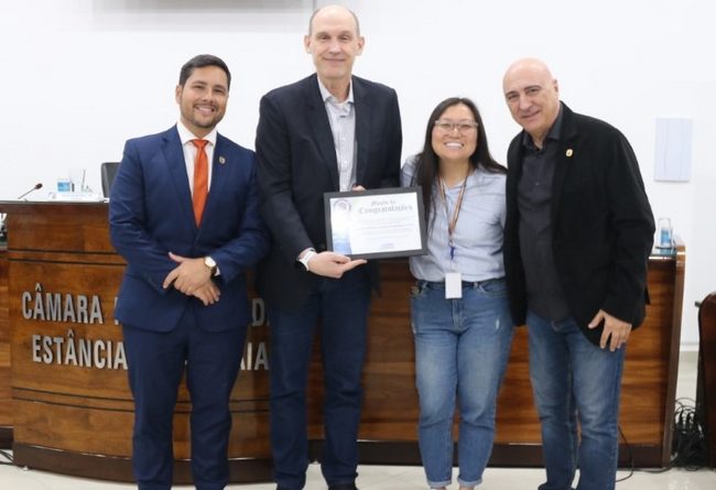 O documento, aprovado por unanimidade, foi entregue a dois representantes, substituindo o diretor técnico Marco Vinholi, do Escritório Regional do Sebrae em Guarulhos (ER GRU). O órgão celebrará 30 anos de fundação em 30 de outubro de 2026 e, por isso, a moção destacou “a notável trajetória institucional e, especialmente, a sólida e transformadora parceria estabelecida com o município de Atibaia”.